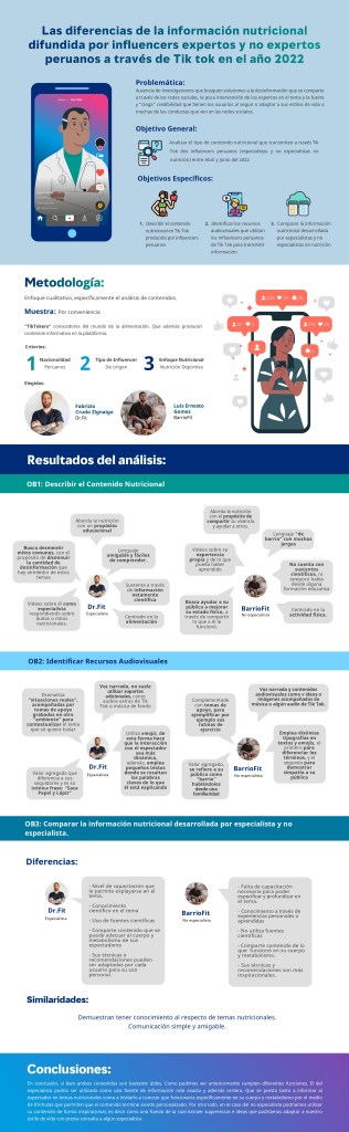 Las diferencias de la información nutricional difundida por influencers peruanos expertos y no expertos a través de Tik tok en el año 2022