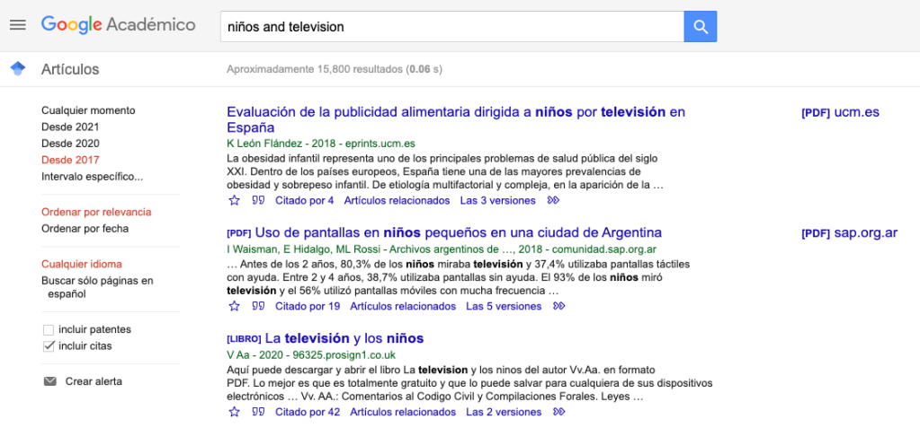 Cuando tengamos un tema más o menos claro, empezaremos a buscar información o lo que decimos científicamente «revisar literatura«. En el ejemplo anterior teníamos como punto de partida «niños y televisión». Este es el inicio de la búsqueda.